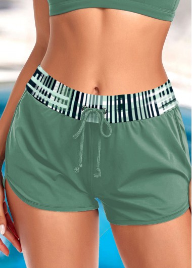 Added Successfully Mid Waisted Geometric Print Sage Green Beach Shorts