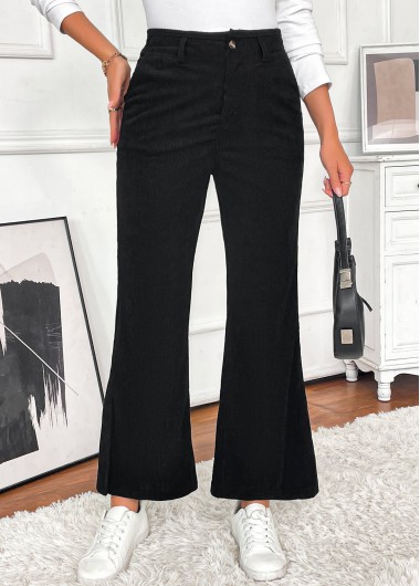 Added Successfully Black Pocket Flare Leg Button Fly High Waisted Pants
