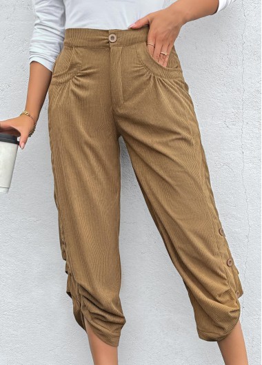 Added Successfully Dark Camel Pocket Straight Leg Elastic Waist Pants