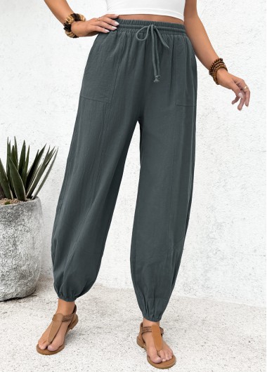 Added Successfully Dark Grey Pocket Straight Leg Elastic Waist Pants