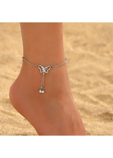 Added Successfully Silver Color Butterfly Iron Detail Anklet