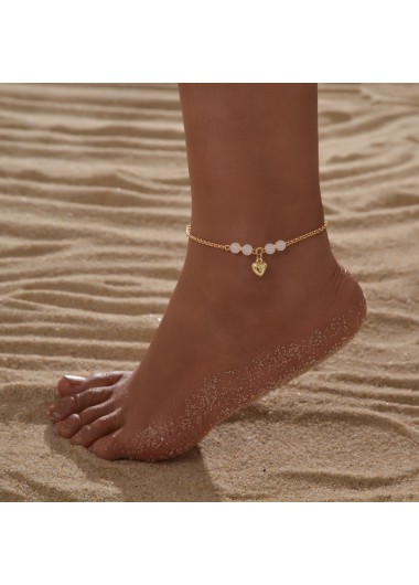 Added Successfully Golden Heart Design Alloy Beaded Anklet