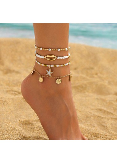 Added Successfully Golden Shell Starfish Seed Beads Anklets