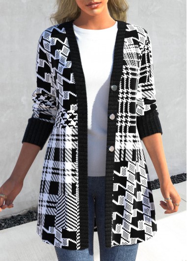 Multi Color Button Geometric Print Long Sleeve Cardigan