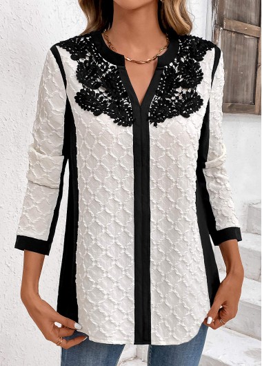 Lace Patchwork Solid Long Sleeve V Neck T Shirt