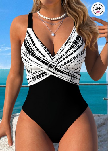 Added Successfully Tummy Coverage Tie Dye Print Black One Piece Swimwear