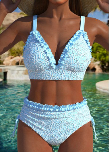 Added Successfully Frill Mid Waisted Light Blue Bikini Set