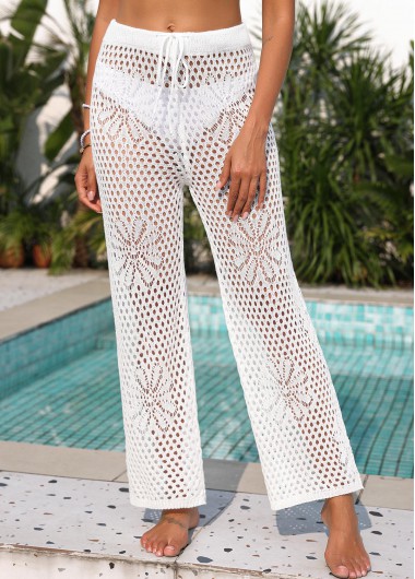 Added Successfully White Patchwork Hollow Out V Neck Cover Up