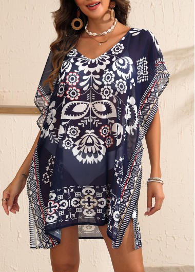Added Successfully Tribal Print Navy Lightweight Cover Up