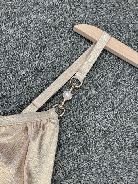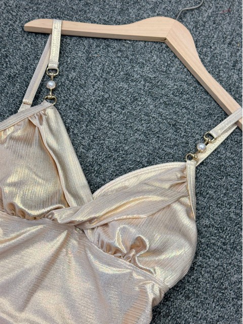 Shine bright by the water in this champagne one-piece swimsuit, a glamorous choice for vacations. The sleeveless V-neck design flatters your silhouette, while the stretchy fabric ensures comfort. Accented with elegant hot stamping details, it’s the perfect blend of sophistication and relaxation.