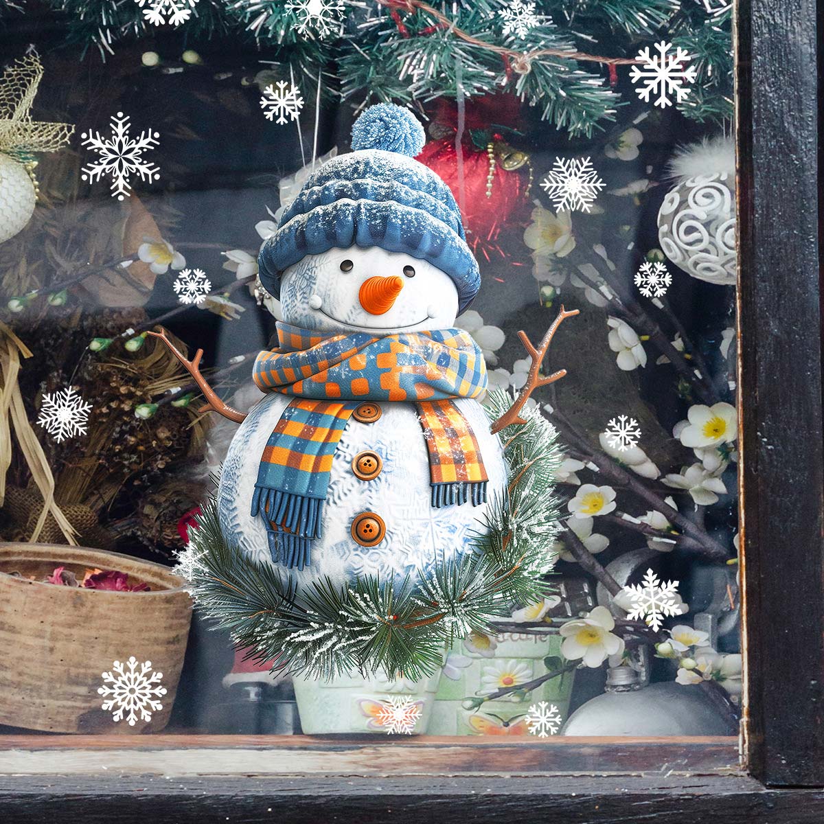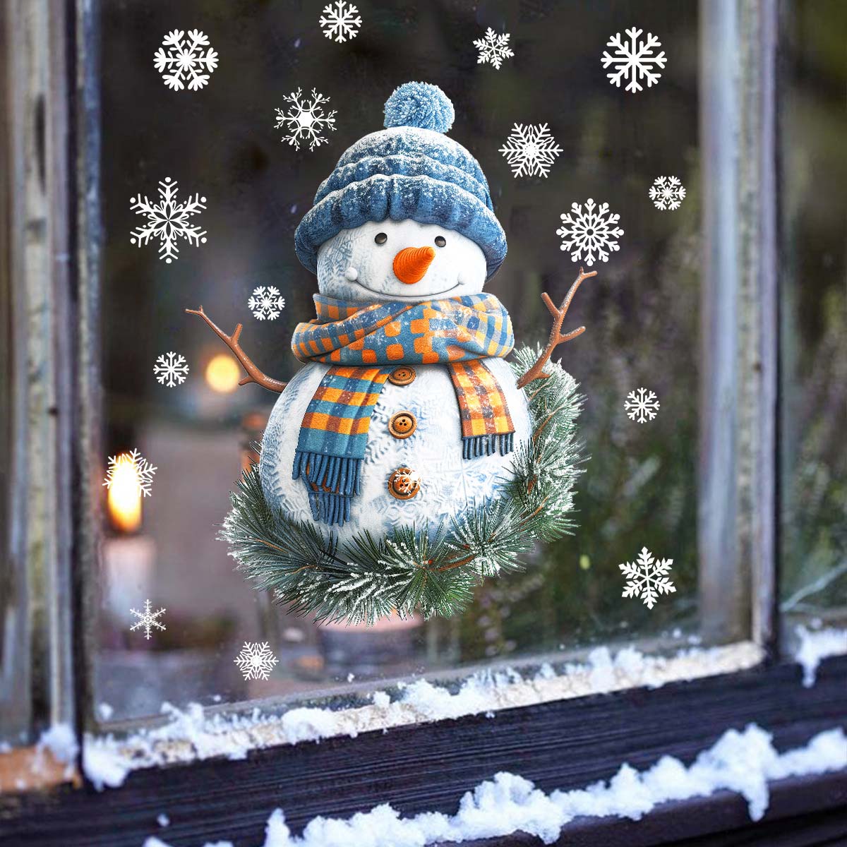 NEW IN Christmas Dusty Blue Snowman Print Glass Stickers