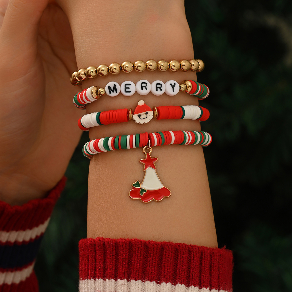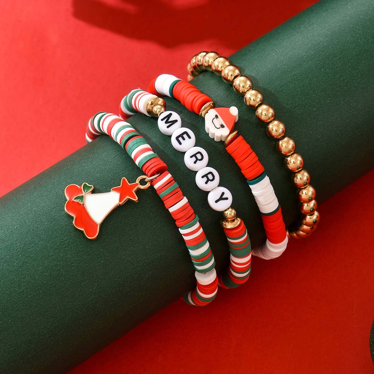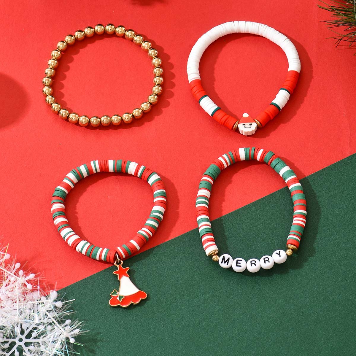 Christmas Red Santa Claus Polymer Clay Bracelets
