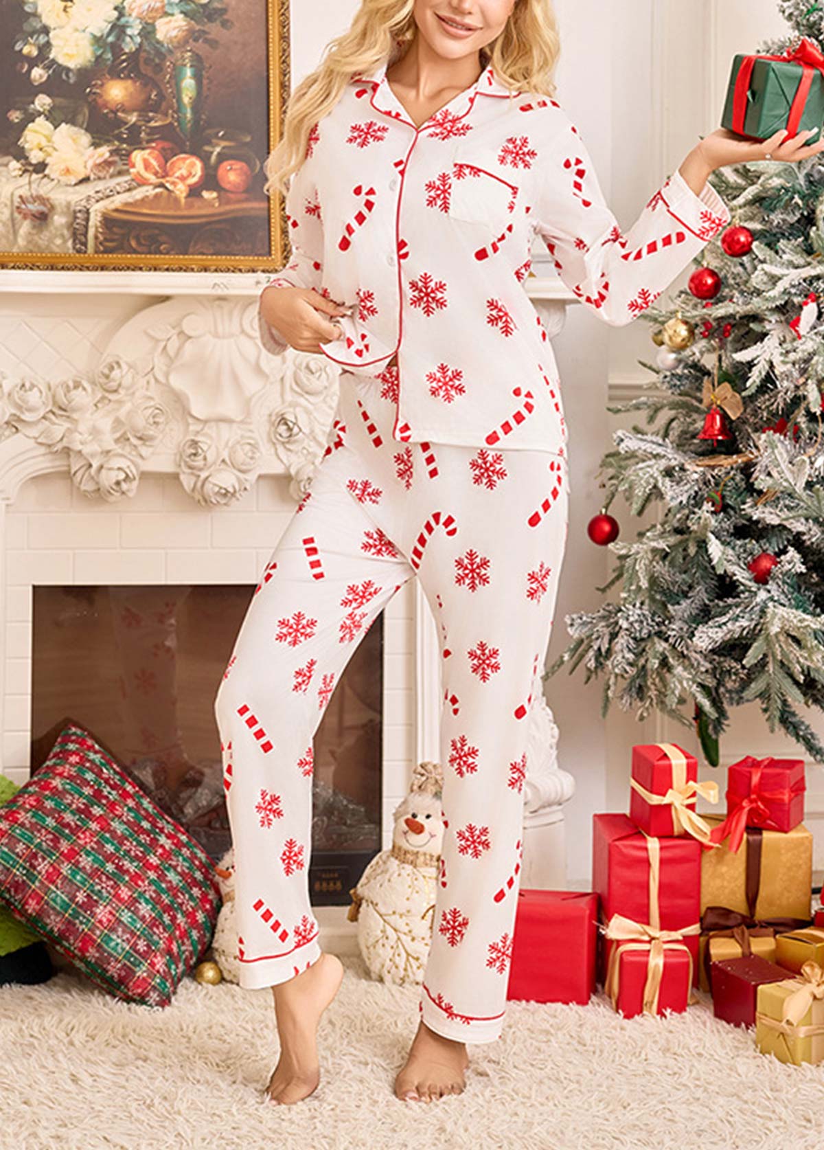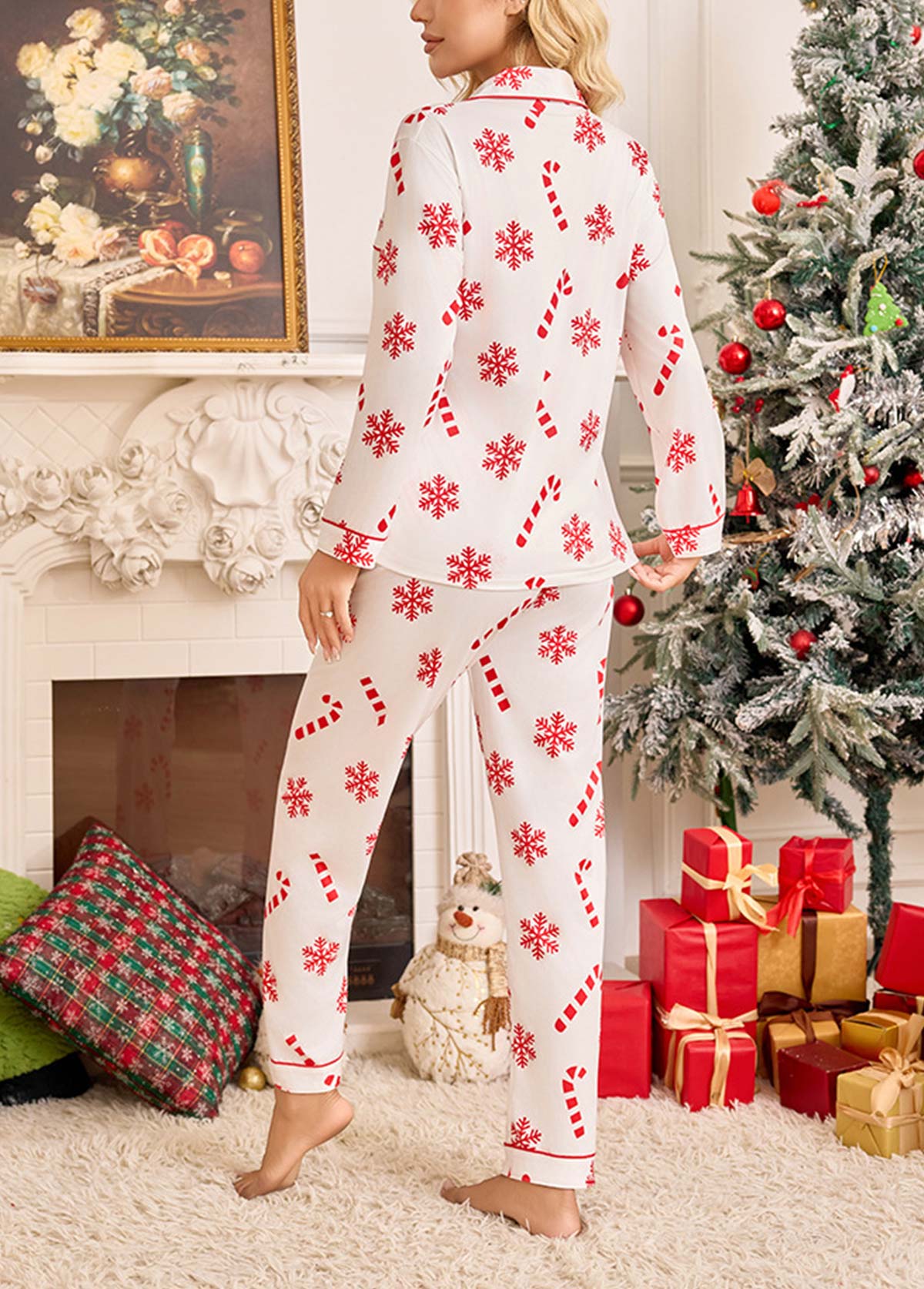Home  /  Loungewear  /  Loungewear Sets  /  Christmas White Snowflake Print Lounge Top and Pants
