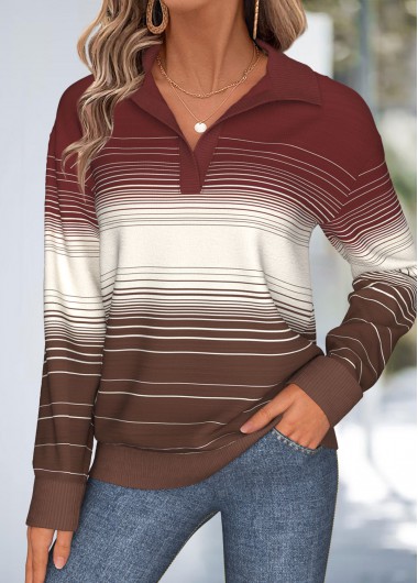 Dark Coffee Tummy Coverage Striped Long Sleeve Blouse
