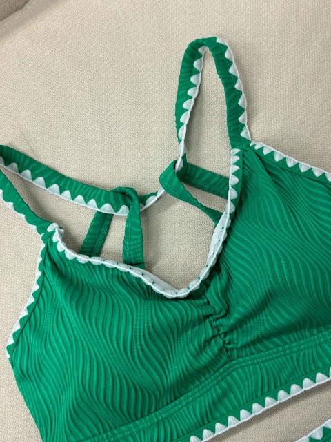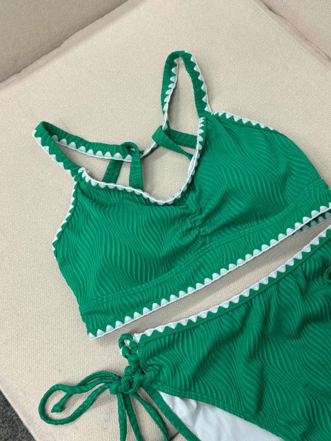 Criss Cross Tropical Plants Print Sage Green Bikini Set