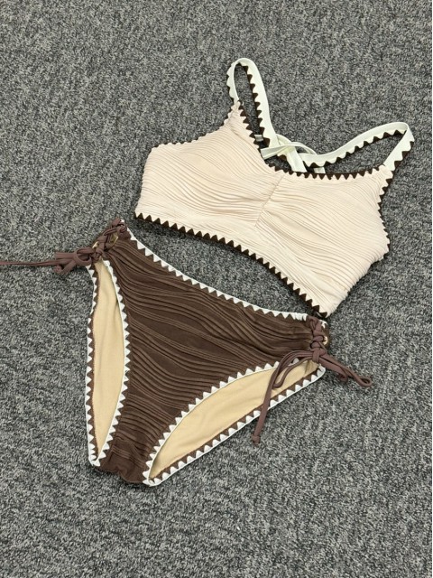 Mid Waisted Paisley Print Light Coffee Bikini Set