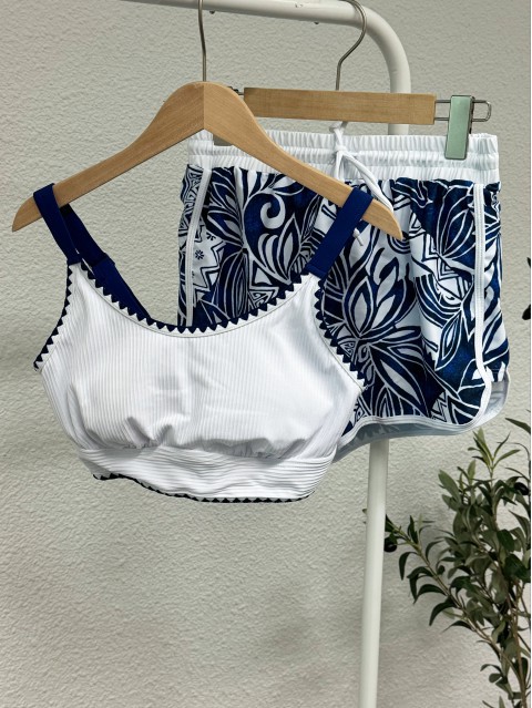 Home  /  Swimwear  /  Bikinis  /  Bikini Sets  /  Contrast Binding High Waisted Geometric Print Bikini Set