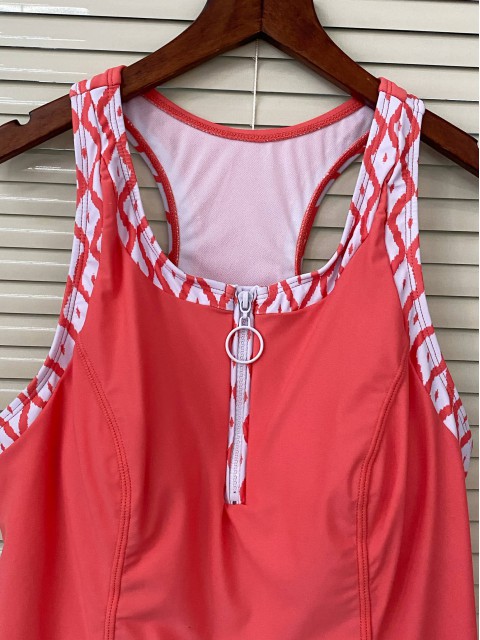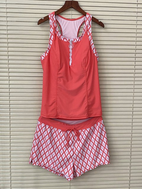 Mid Waisted Tropical Plants Print Orange Tankini Set