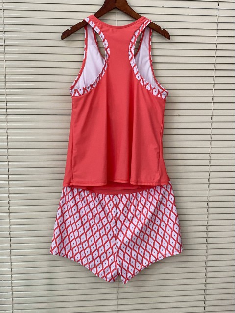Two Piece Mid Waisted Leopard Red Tankini Set