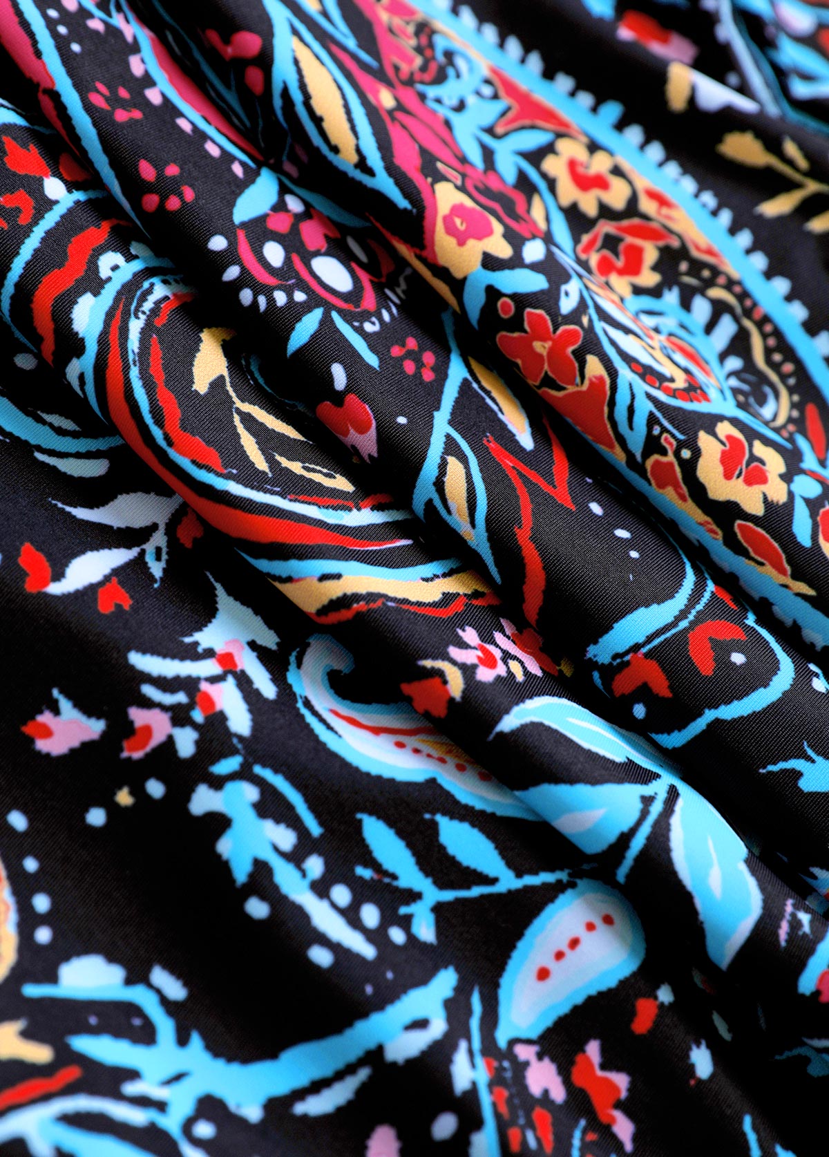 Tummy Coverage High Waisted Paisley Print Tankini Set
