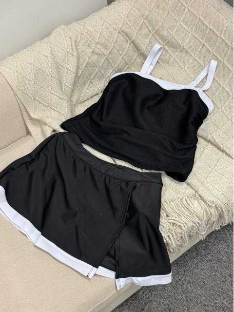 Contrast Binding Mid Waisted Gingham Print Tankini Set