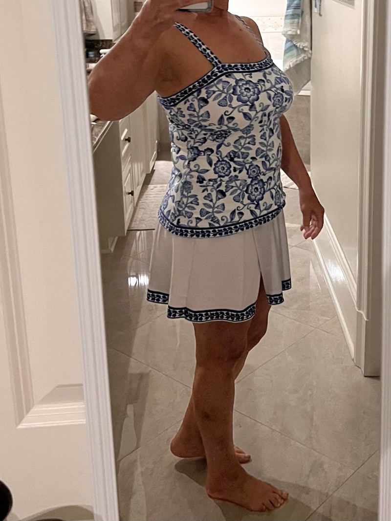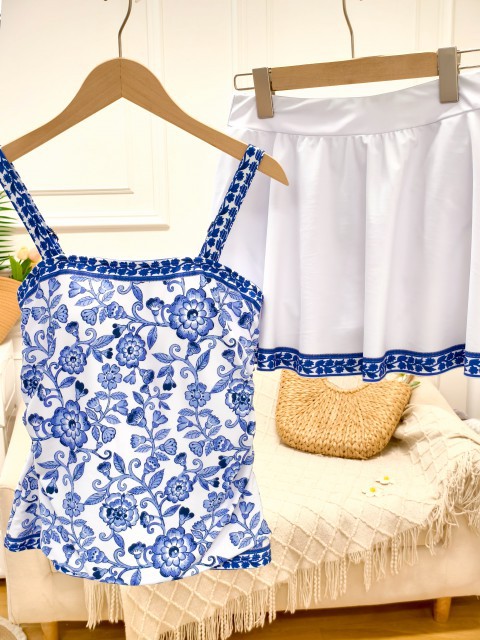 Mid Waisted Leaf Print Royal Blue Tankini Set