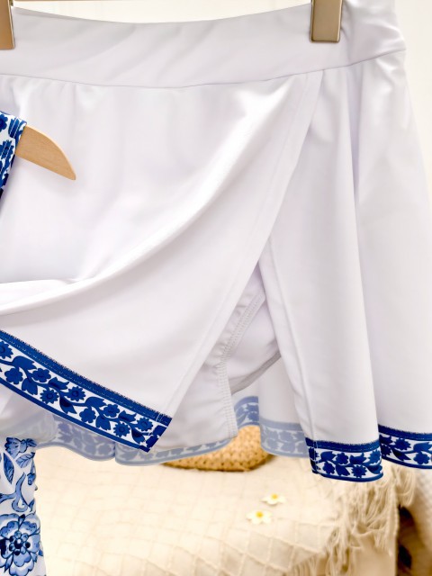 Tummy Coverage Mid Waisted Floral Print White Tankini Set