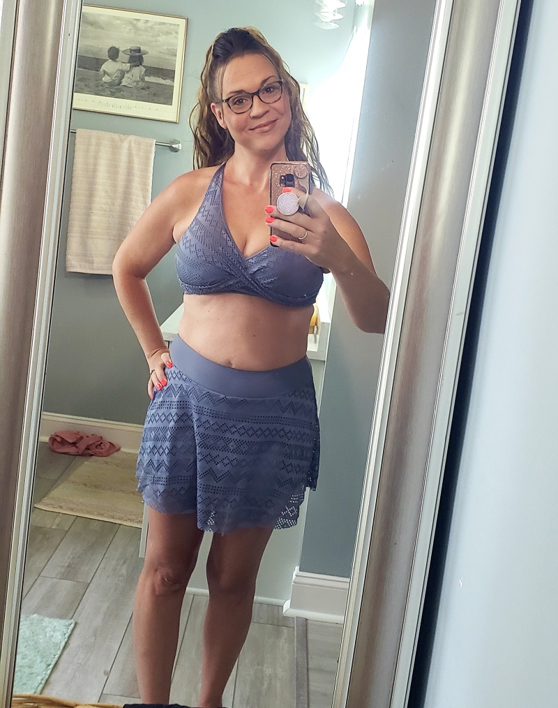 V-Neck Lace Cyan One Piece Swimwear and Bra