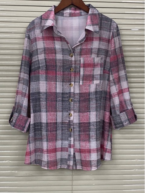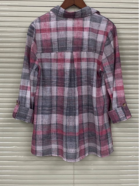 Light Blue Tummy Coverage Plaid Long Sleeve Shirt
