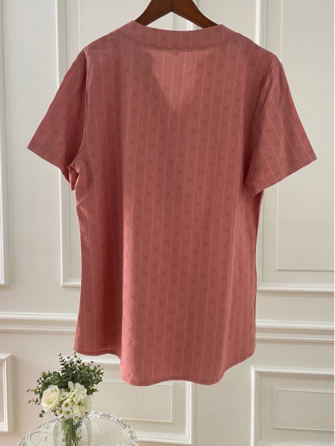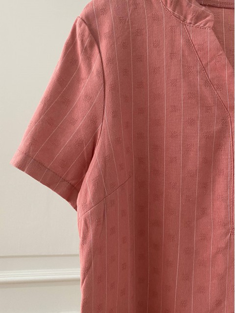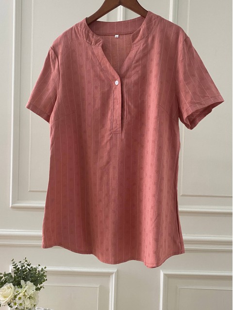 Hot Pink Button Short Sleeve Split Neck Blouse