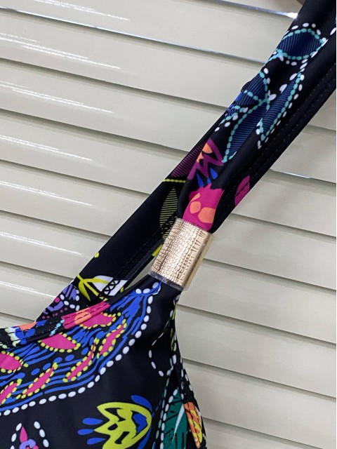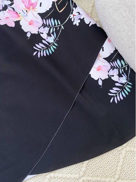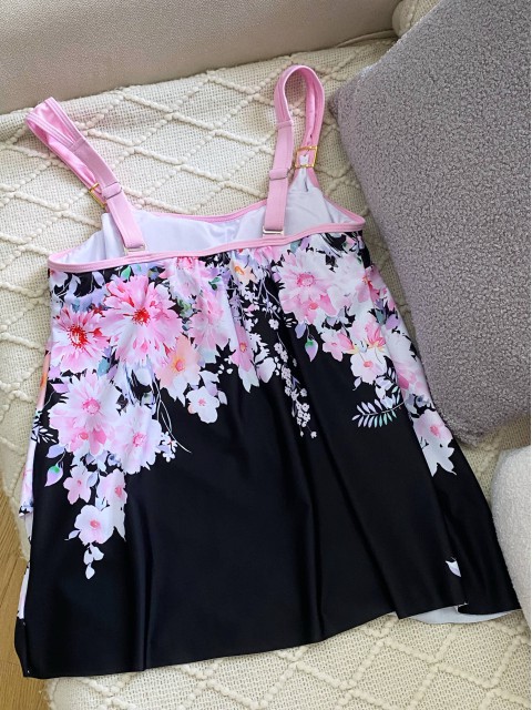 Cut Out Floral Print Black Tankini Set