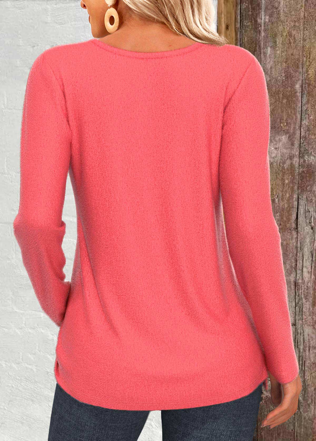 Grey Patchwork Plaid Long Sleeve Split Neck T Shirt