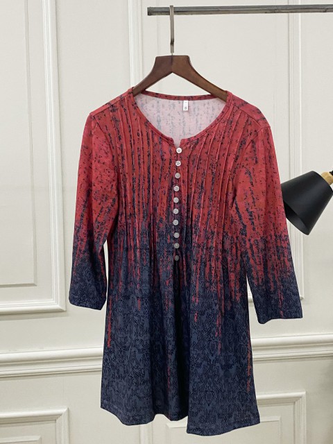 Multi Color Tummy Coverage Ombre Long Sleeve T Shirt