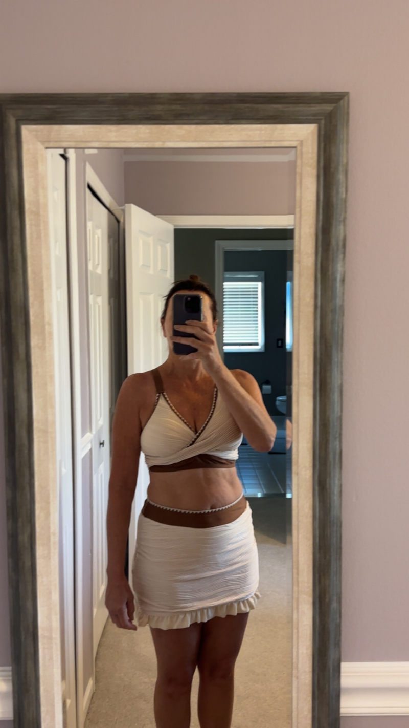 Mid Waisted Paisley Print Light Coffee Bikini Set
