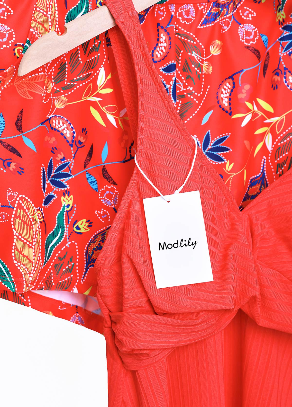 Dive into vacation vibes with our coral tankini set, featuring a delightful floral botanical print. This ensemble, comprising a top and boyshort bottoms, boasts practicality with pocket details and allure with a chic cross-front design. Perfect for leisurely days by the water, it exudes effortless style and comfort. Embrace sunny days in style with the vibrant addition to your swimwear collection.