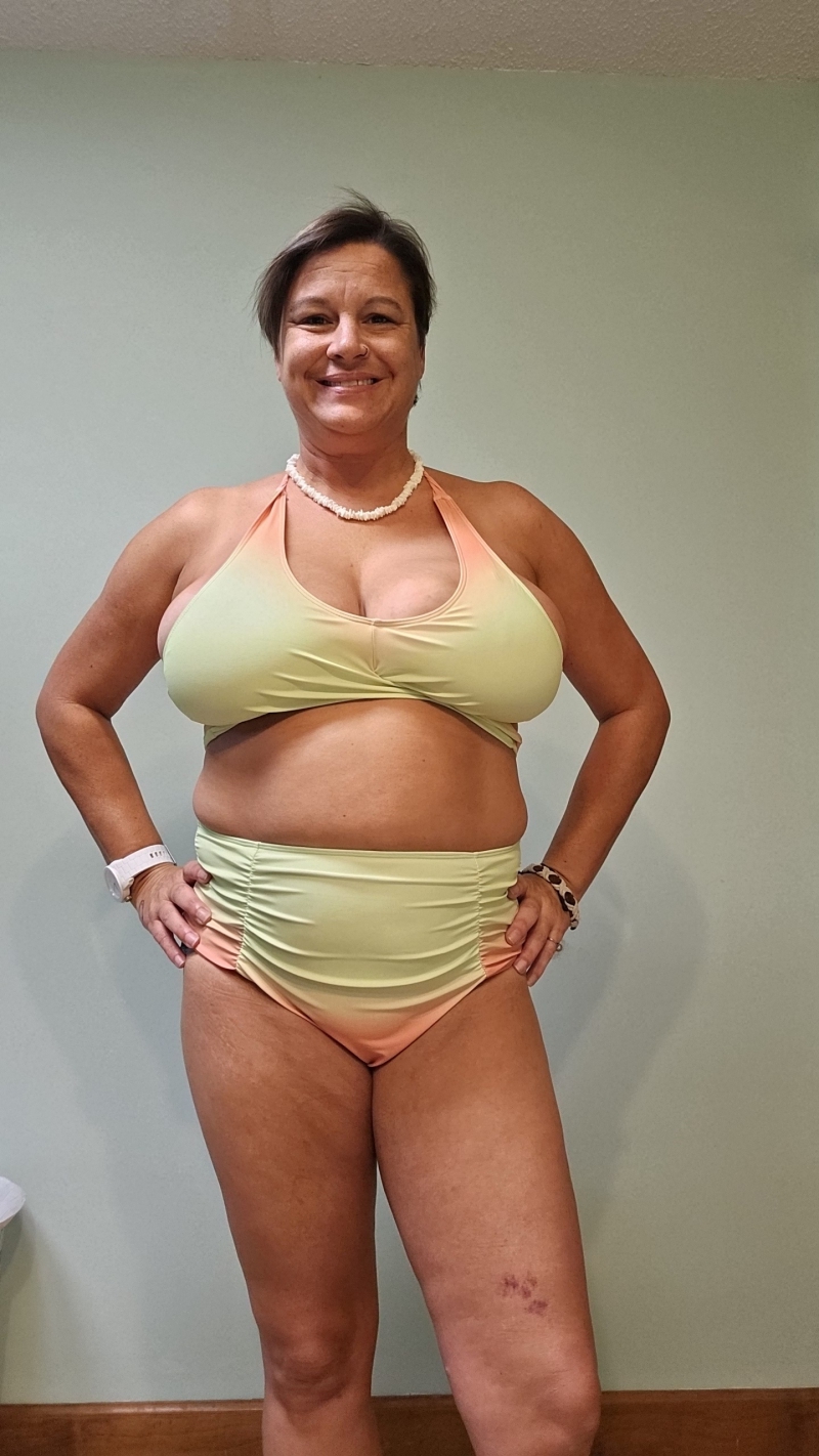 Ruched Mid Waisted Striped Multi Color Bikini Set
