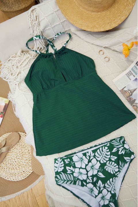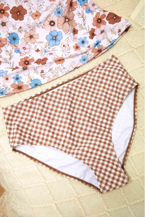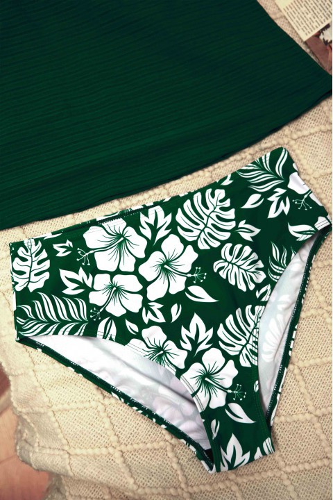 • Criss Cross Mid Waisted Floral Print Tankini Set | thumb picture