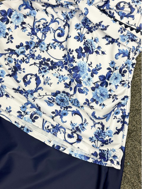 Mid Waisted Leaf Print Royal Blue Tankini Set