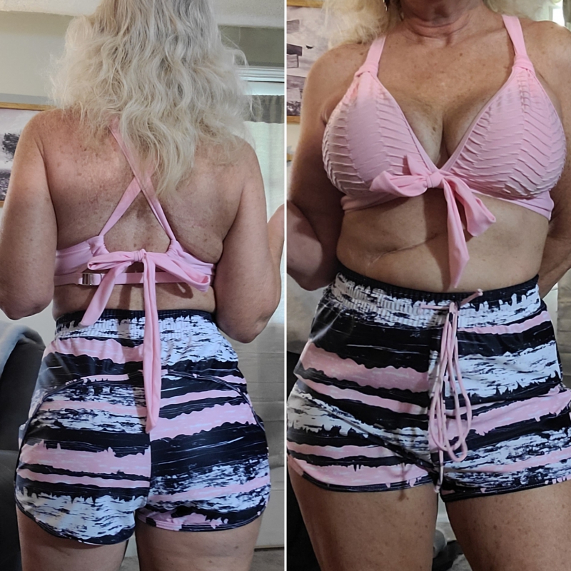 Get ready to sizzle in the sun with our bikini set! Picture this: a white bralette paired with red-and-white striped hipster bottoms. With a playful criss-cross design, complete with a bow tie and adjustable drawstring straps, it's not just cute—it's flattering too, thanks to its push-up feature. Perfect for soaking up the rays on your holiday getaway!