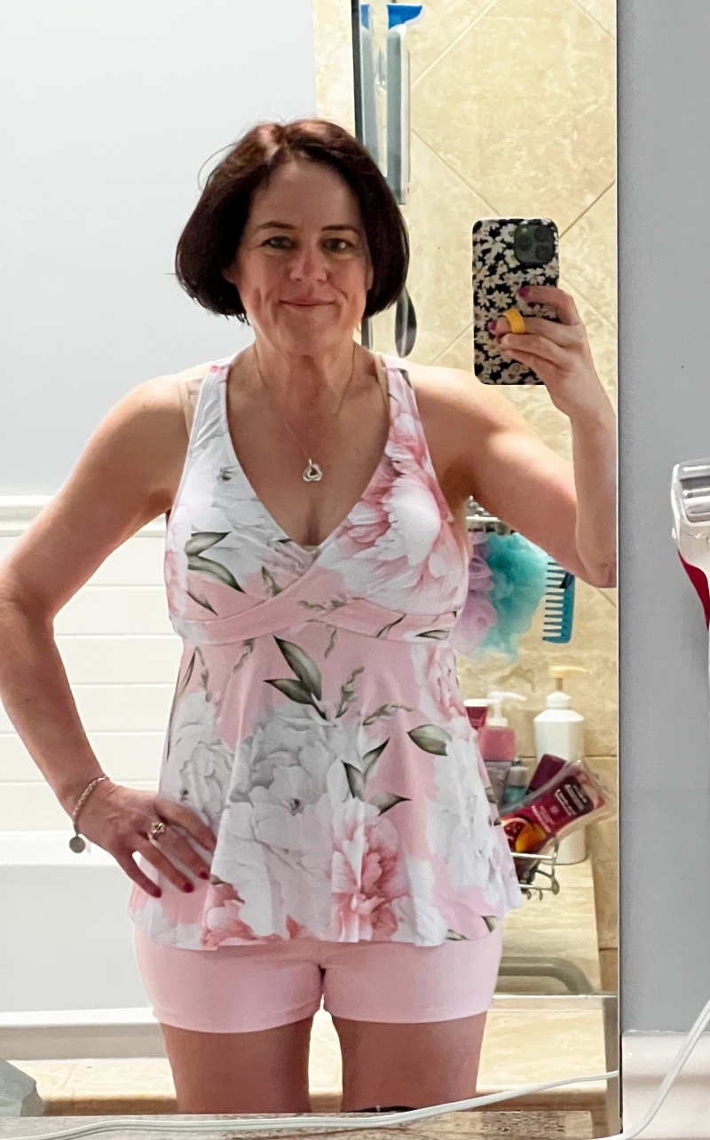Home  /  Swimwear  /  Tankinis  /  Tankini Sets  /  Cross Front Sage Green Tropical Print Tankini Set