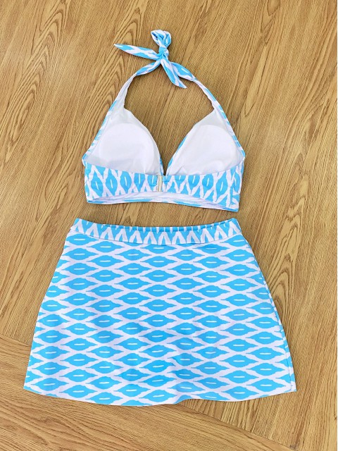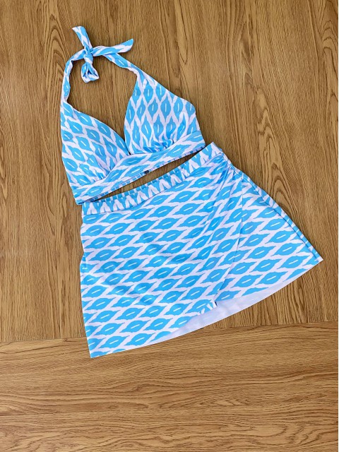 Random Floral Two-Piece One Piece Swimwear and Skirt