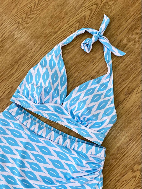 Contrast Binding High Waisted Geometric Print Bikini Set