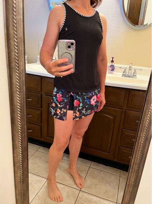 Tummy Coverage Tropical Plants Print Black Tankini Top