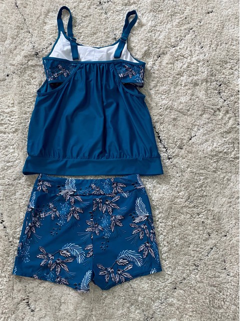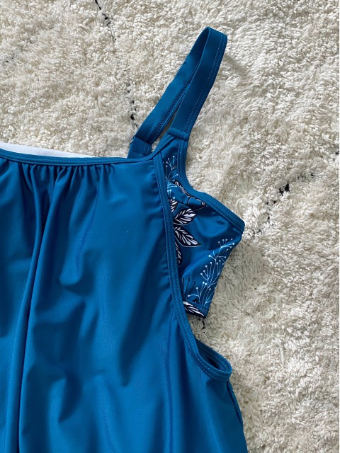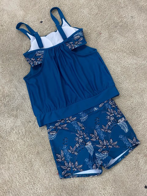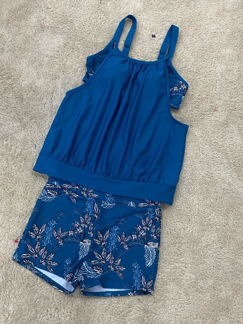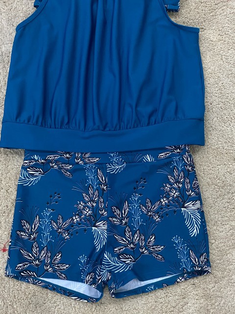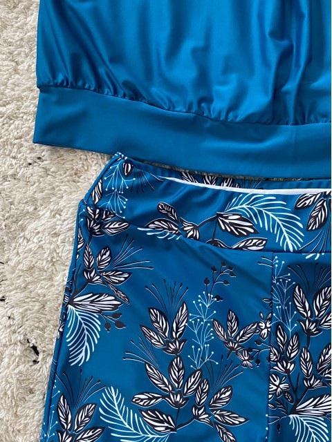 Mid Waisted Leaf Print Royal Blue Tankini Set