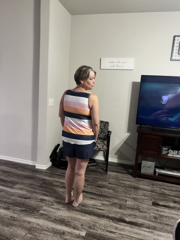 Patchwork Mid Waisted Striped Navy Tankini Set