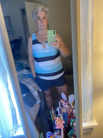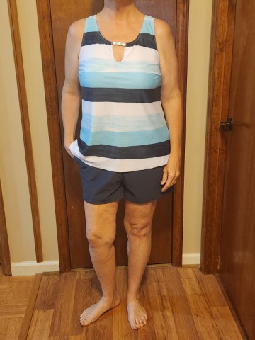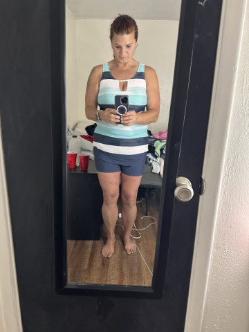 Tummy Coverage Mid Waisted Striped Light Blue Tankini Set