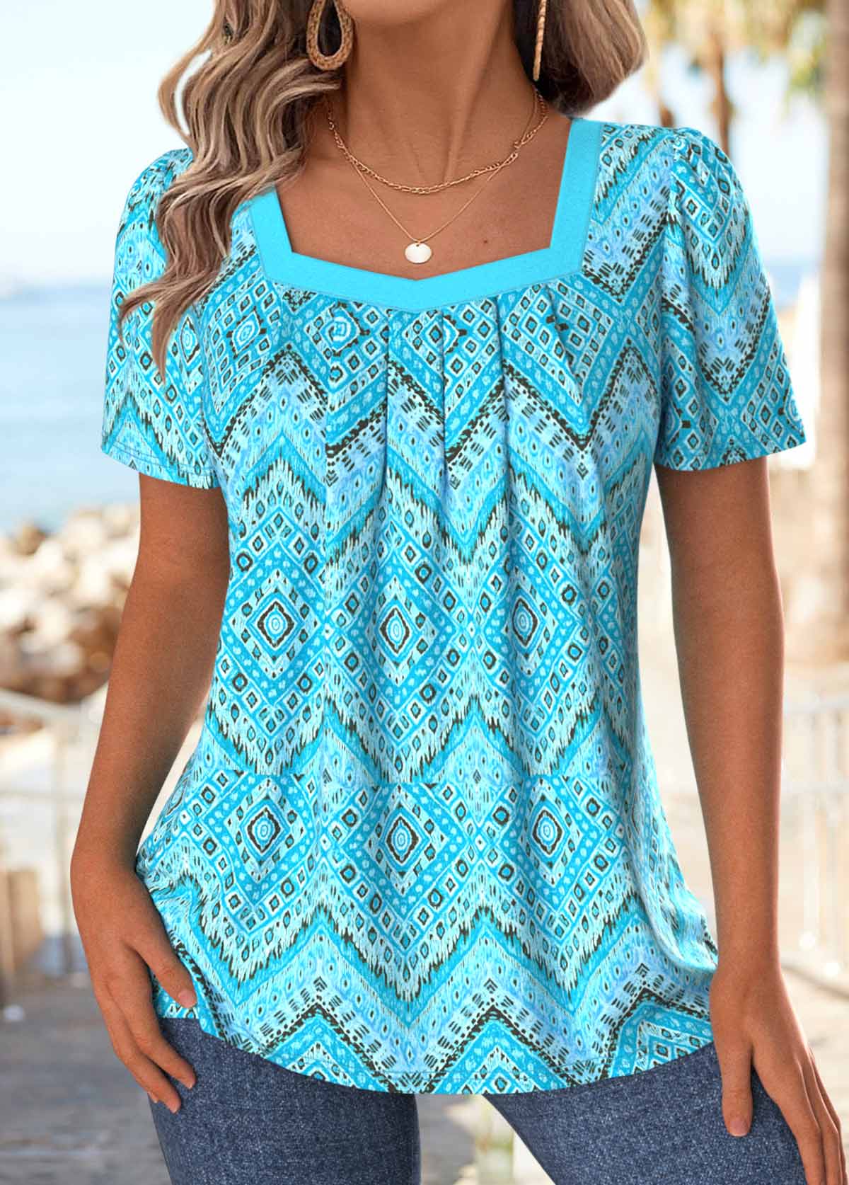 Mint Green Geometric Print Tummy Coverage T Shirt