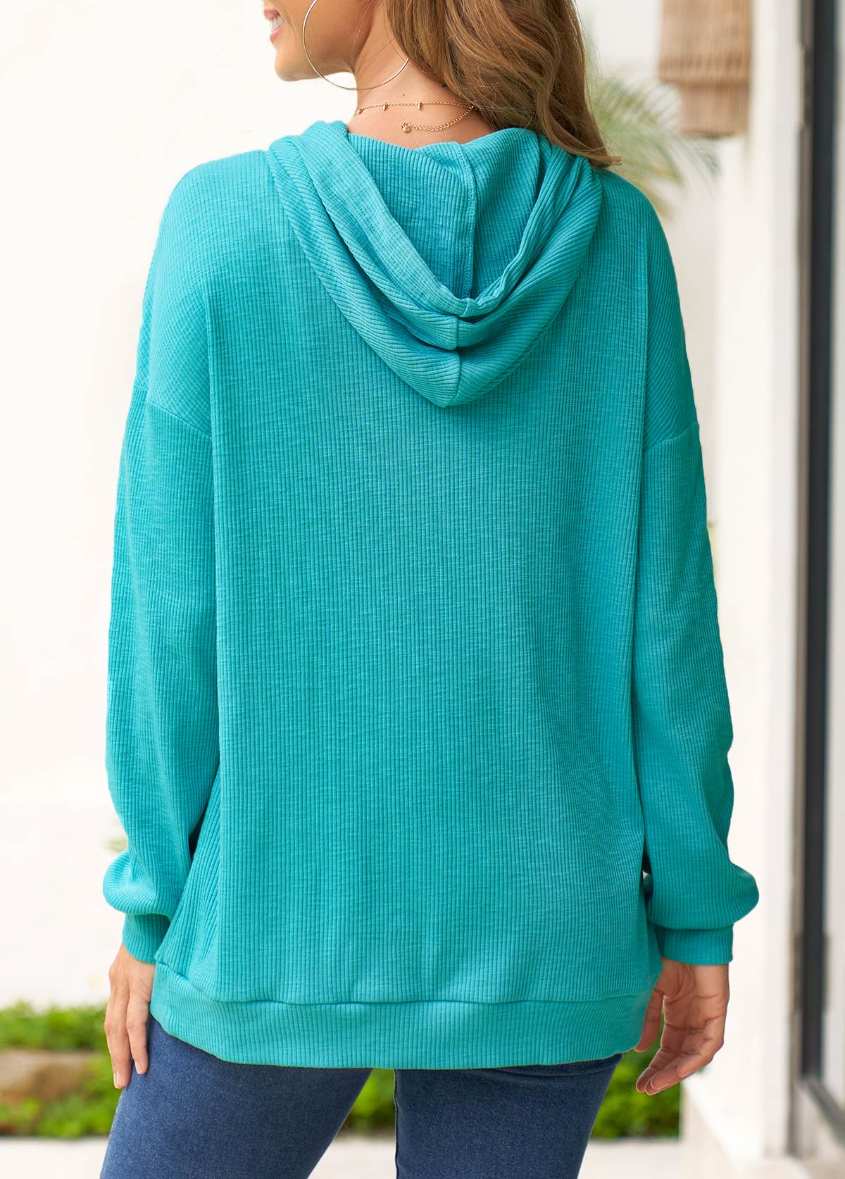 Mint Green Patchwork Striped Long Sleeve Split Neck Sweatshirt