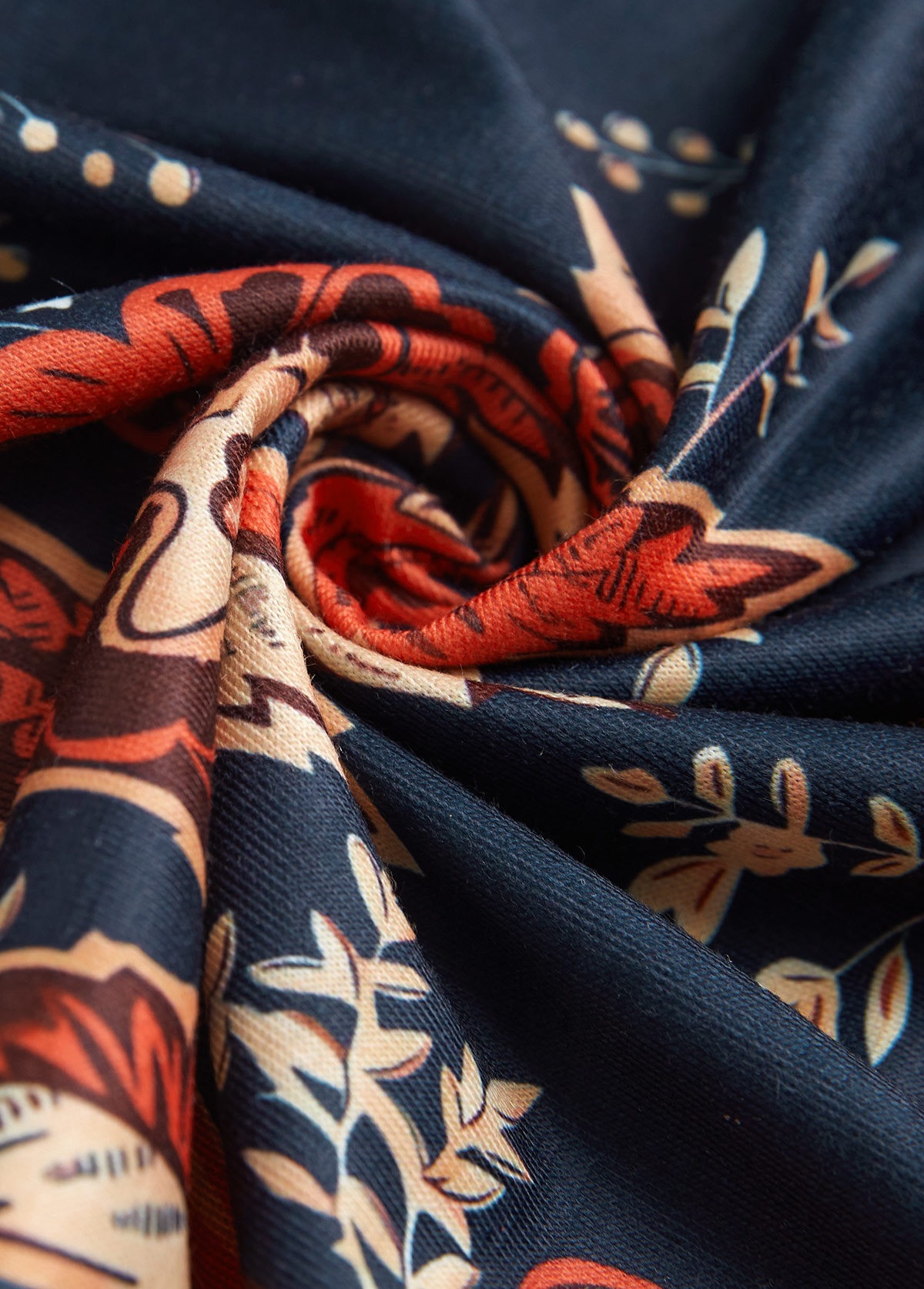 • Dark Blue Circular Ring Floral Print Sleeveless Dress | thumb picture