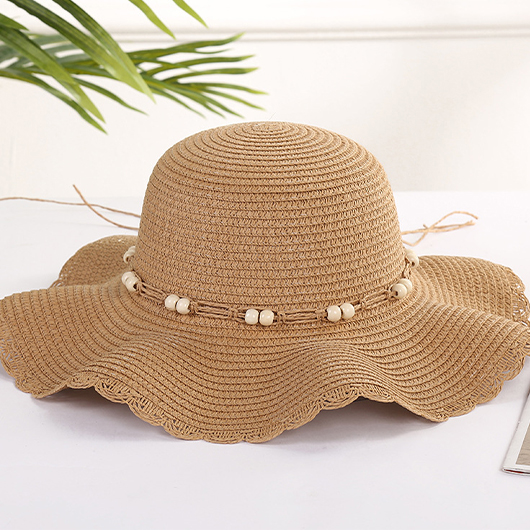 women's clothes / Accessories / Hats  /  Dark Camel Beads Scalloped Hem Straw Hat